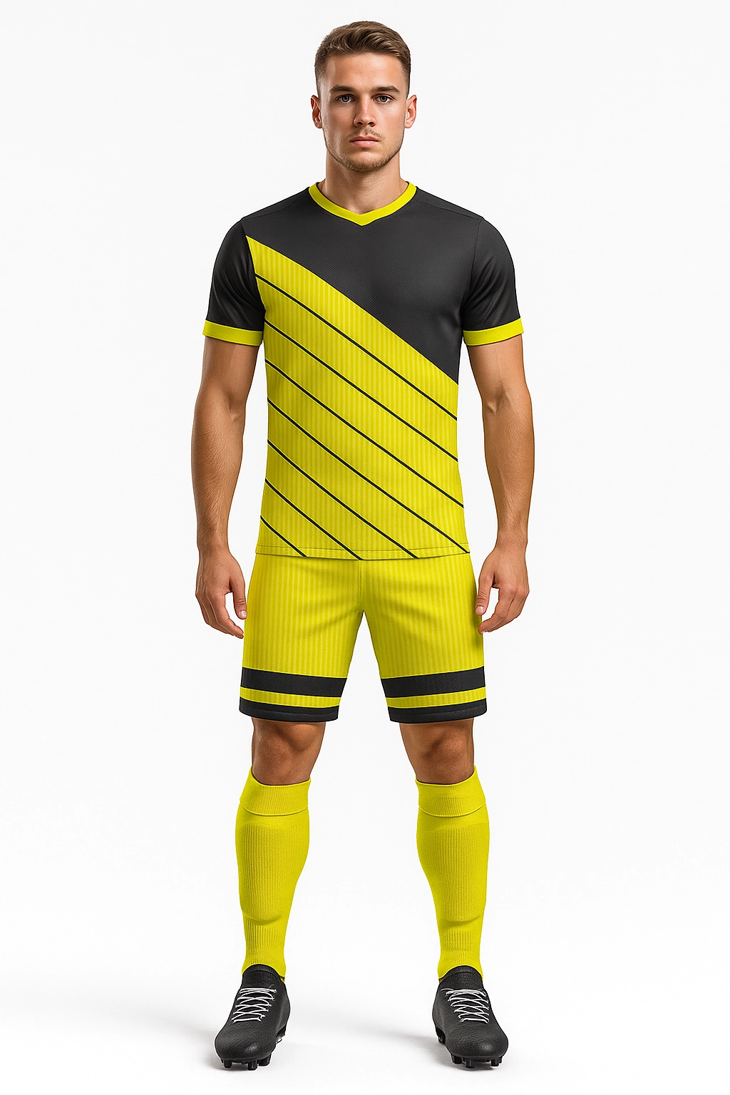 O Conjunto ELLITE é o fardamento de padrão profissional para os mais exigentes. Inclui camisa numerada, calção e meião em diversas cores. Produzido com malhas dry especiais — lisa, texturizada, telinha ou com elastano — e sublimação total em alta definição.